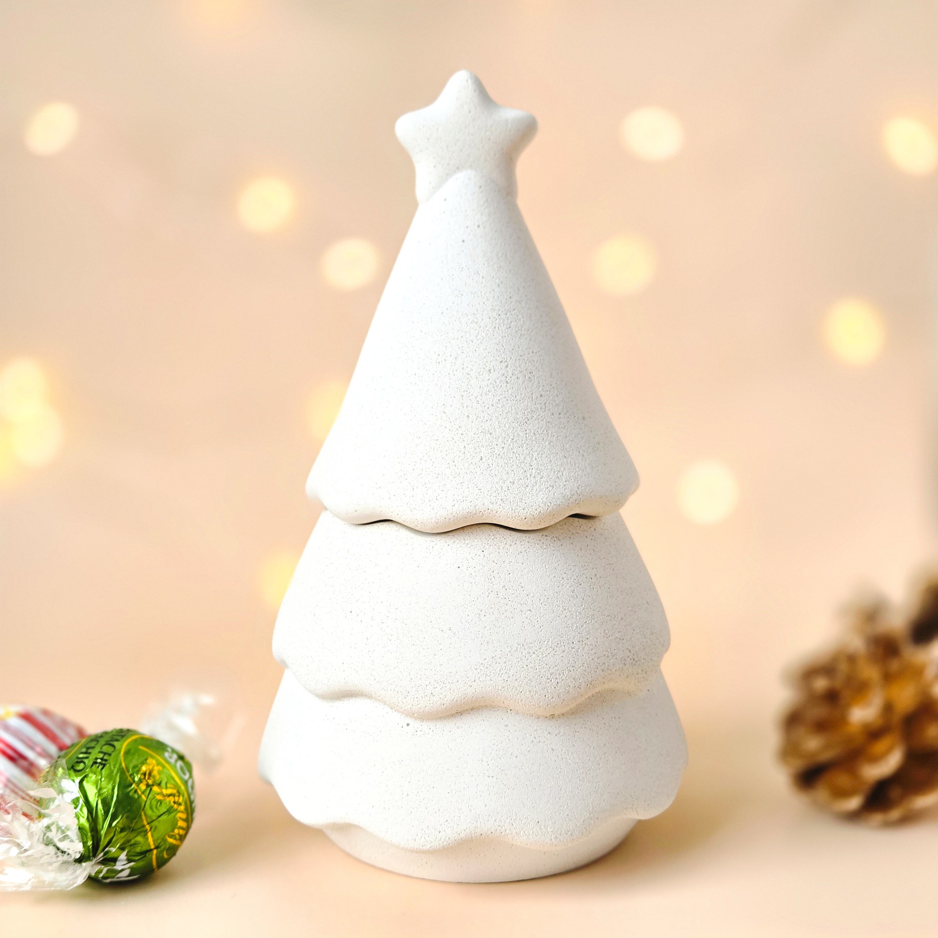 雪をまとったような、白いツリー型の小物入れです。