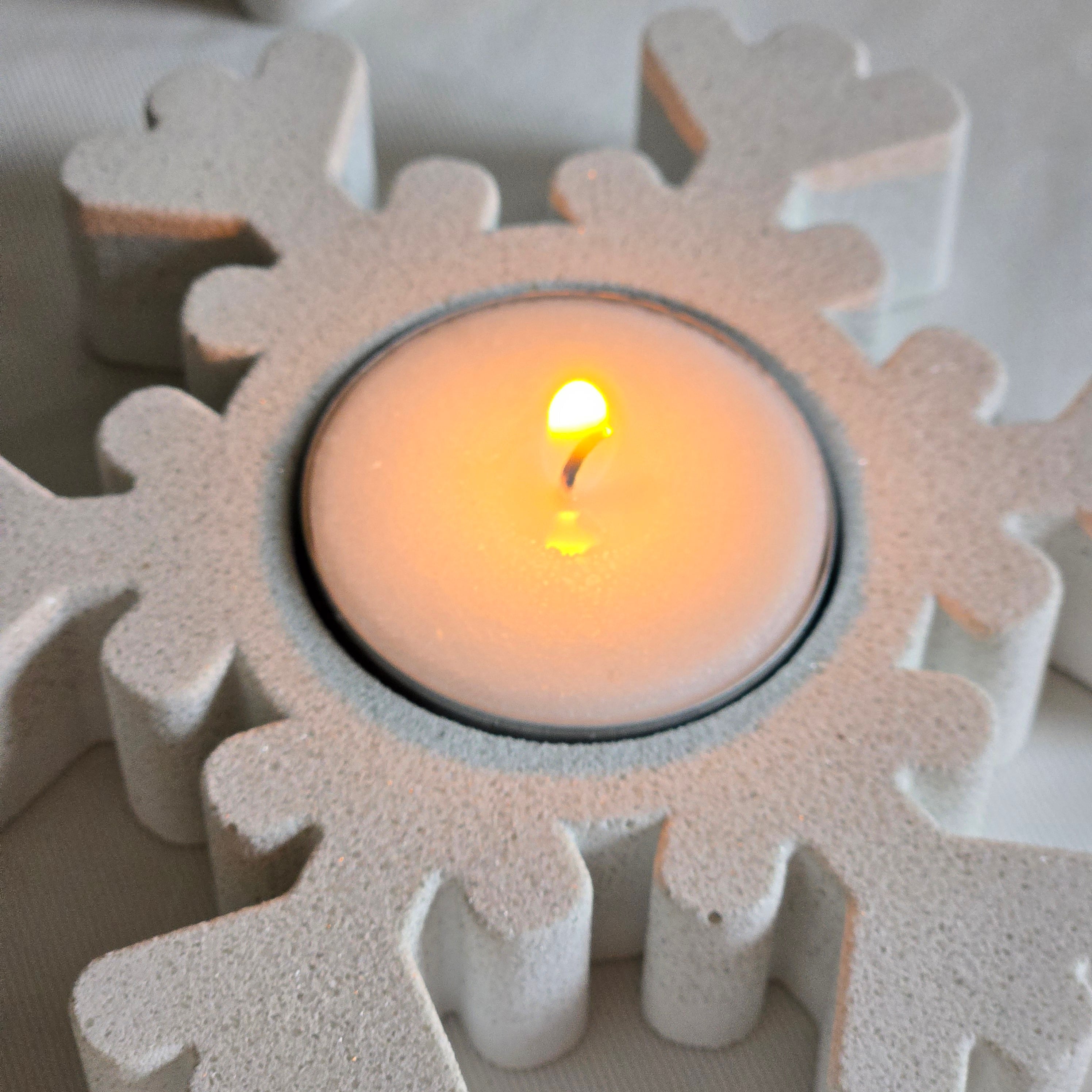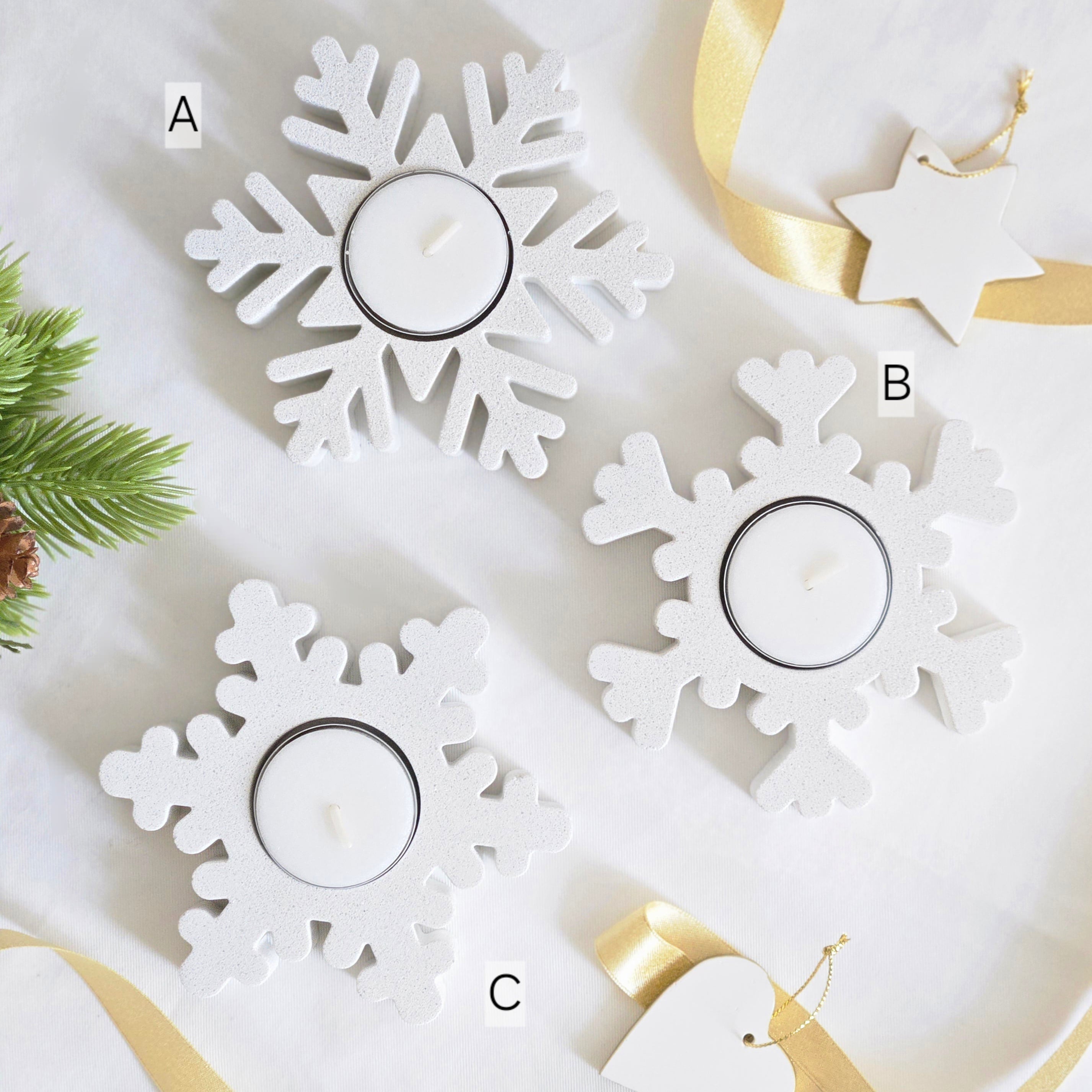 冬のおうち時間を彩る、ジェスモナイト樹脂の雪のキャンドルホルダーとオーナメントのセットです。