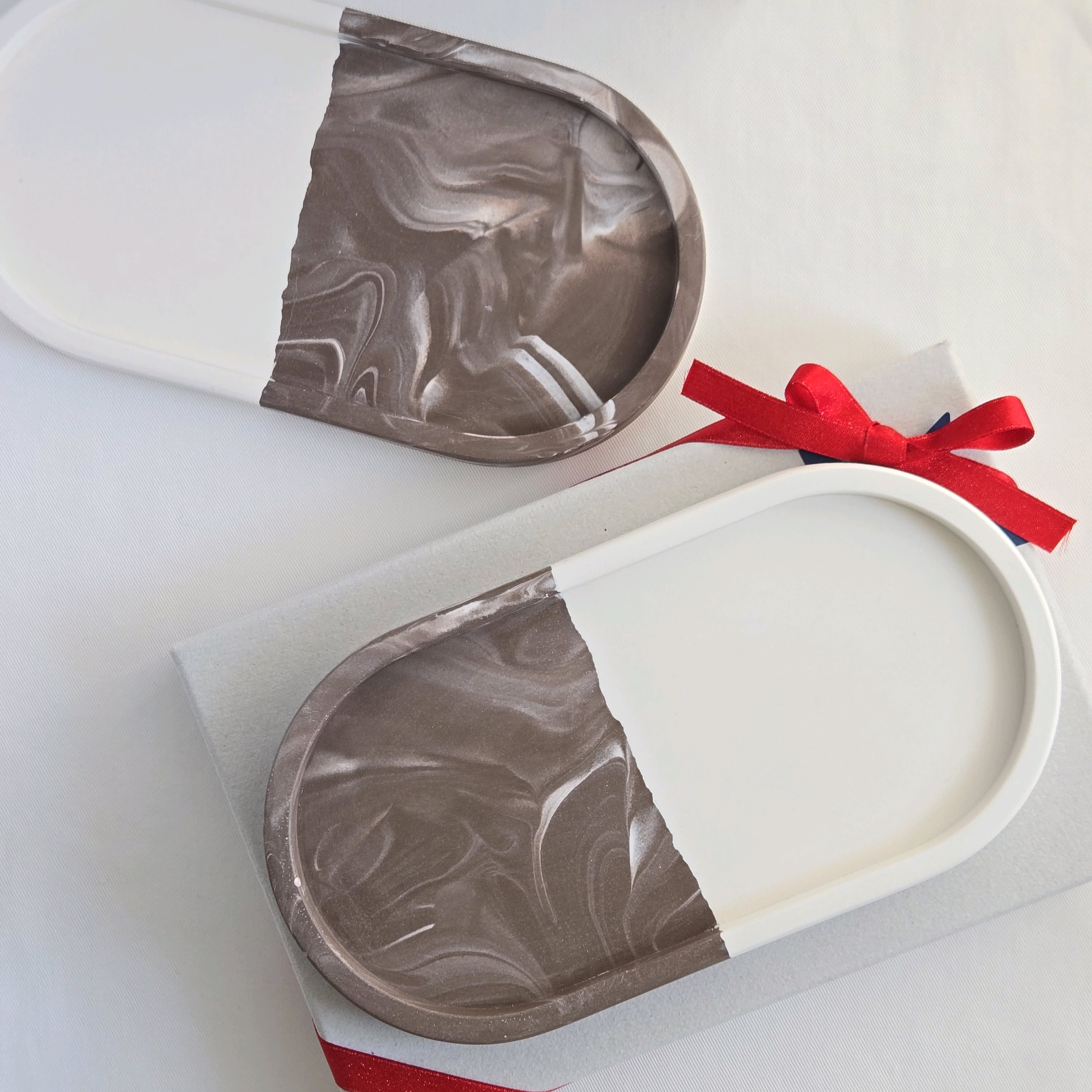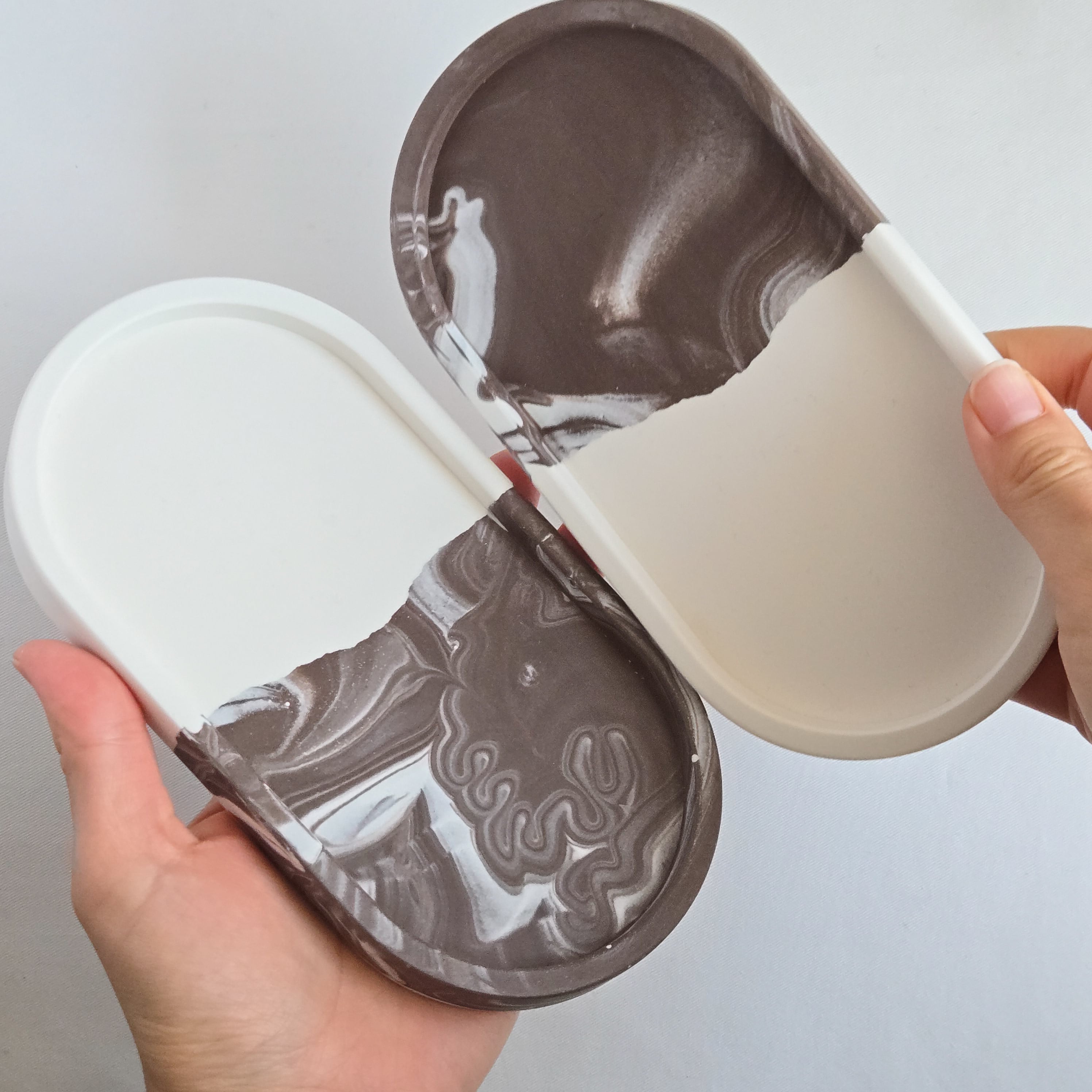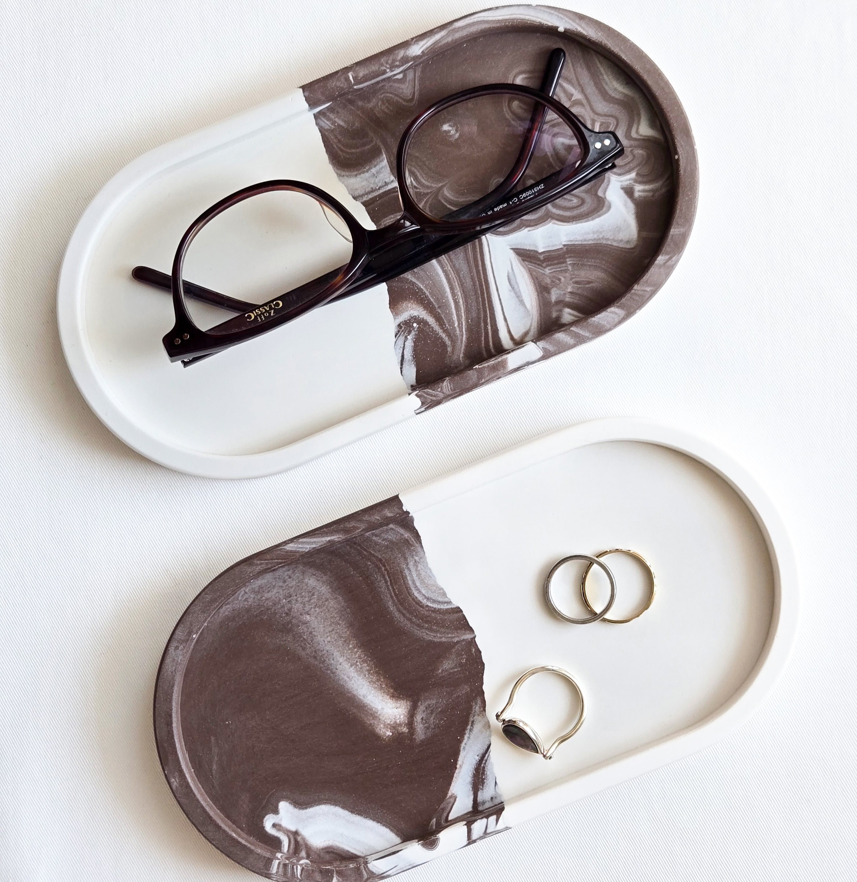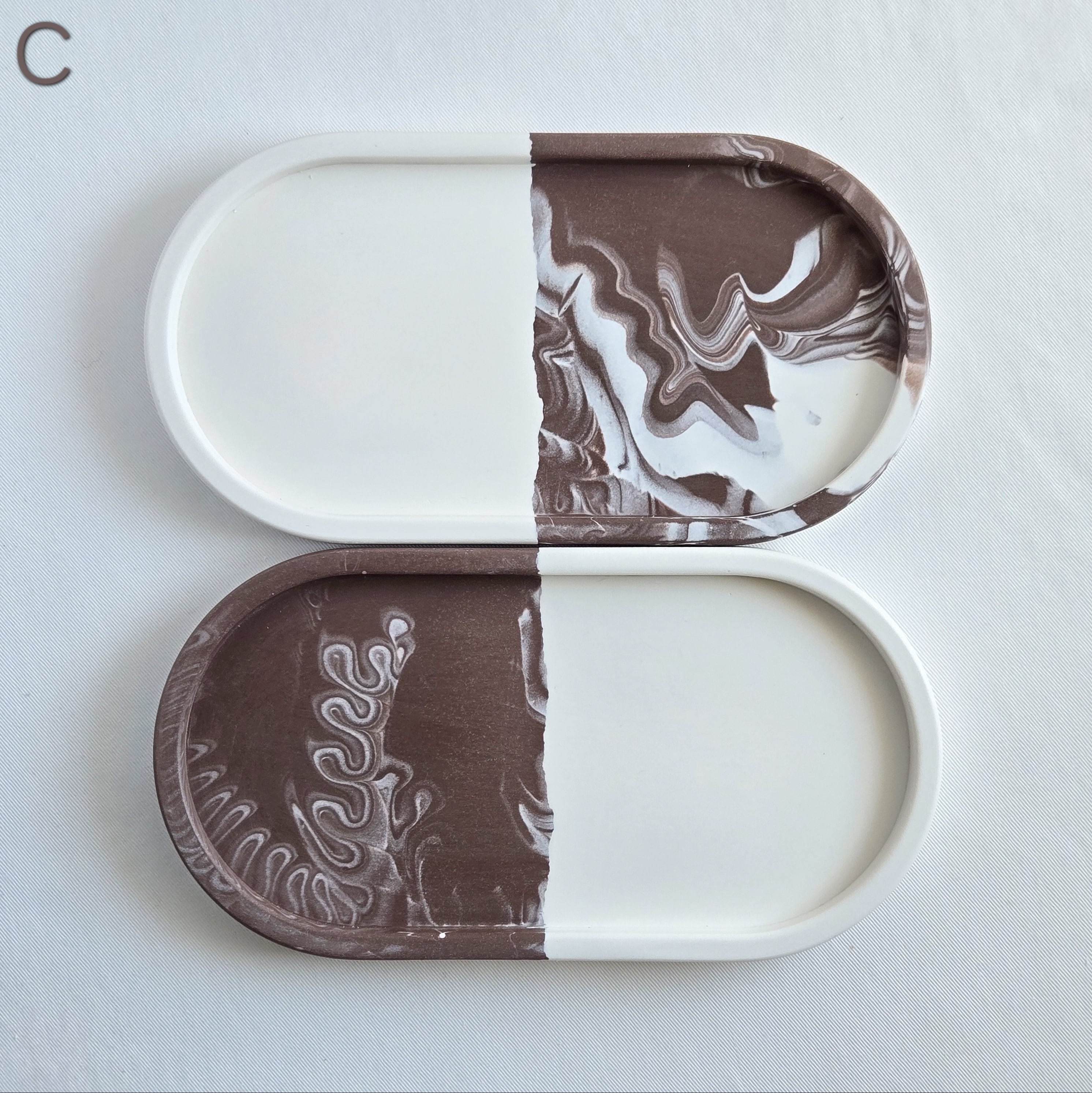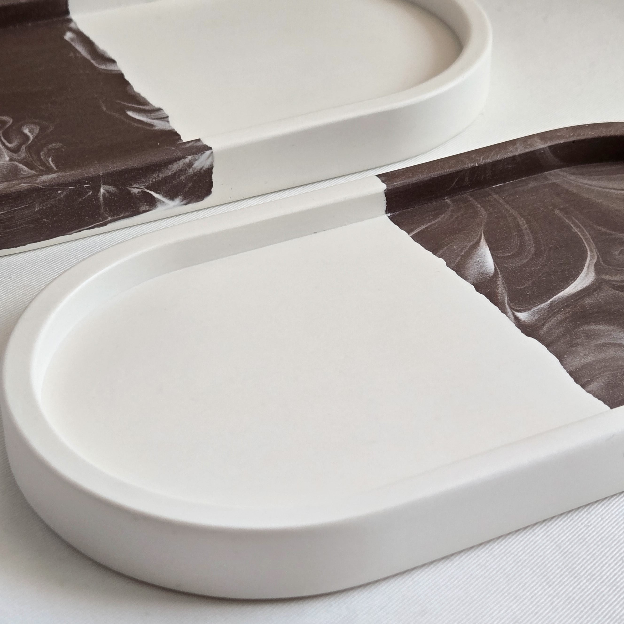 つながる模様のペアトレイ - コーヒーブラウンマーブル | 送料無料 | ジェスモナイト トレー | お揃いギフト