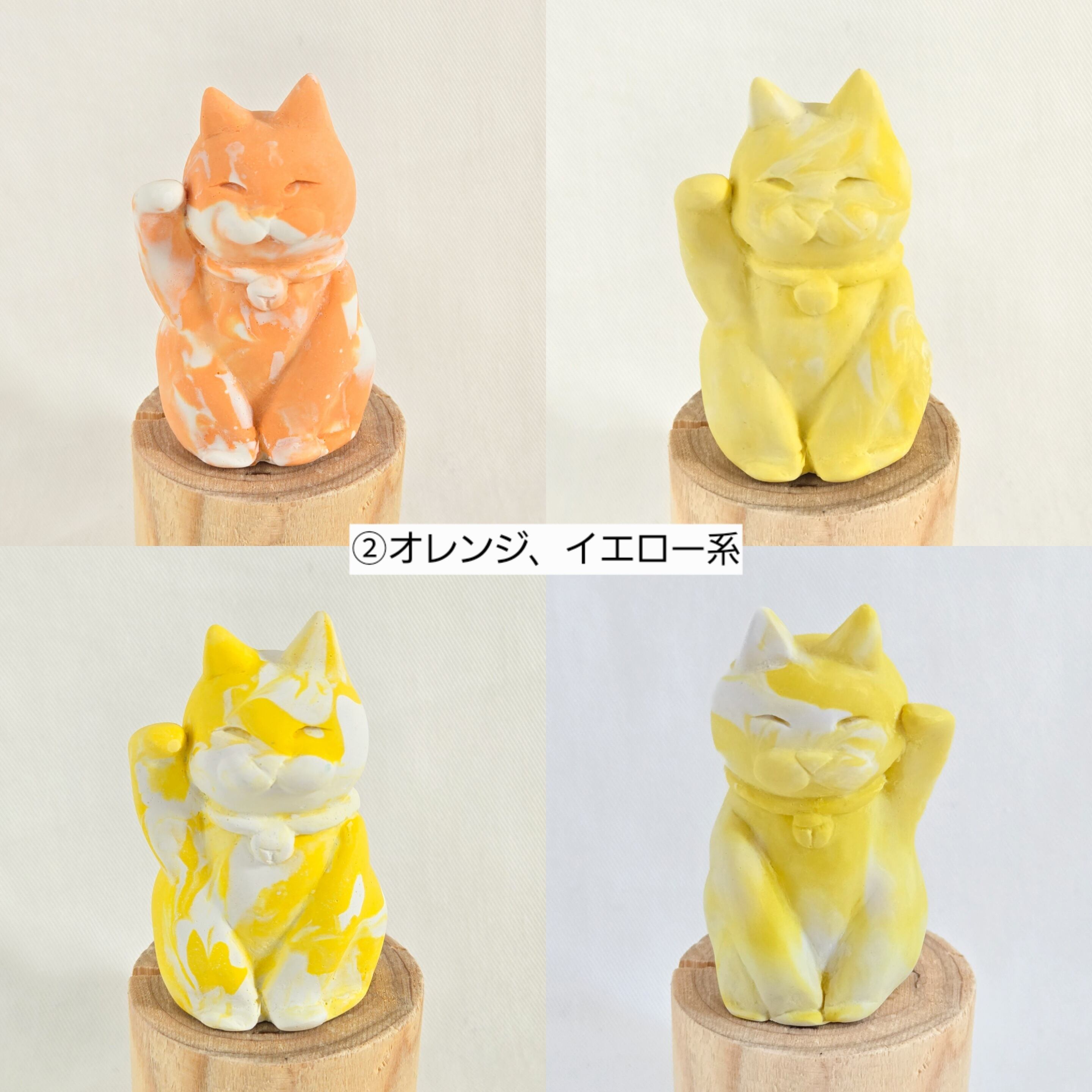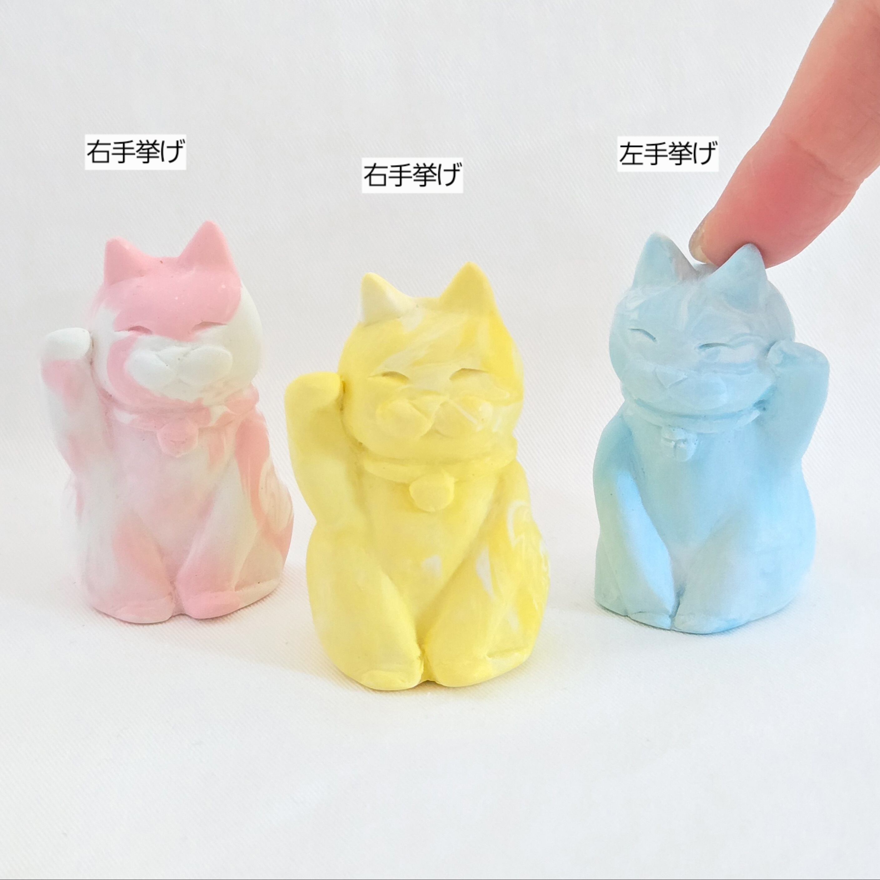 小さなHAPPYを呼び込む、手のひらサイズのカラフル招き猫。玄関やデスクにちょこんと飾れる、ぽてっと丸いフォルムにこだわって製作しています。