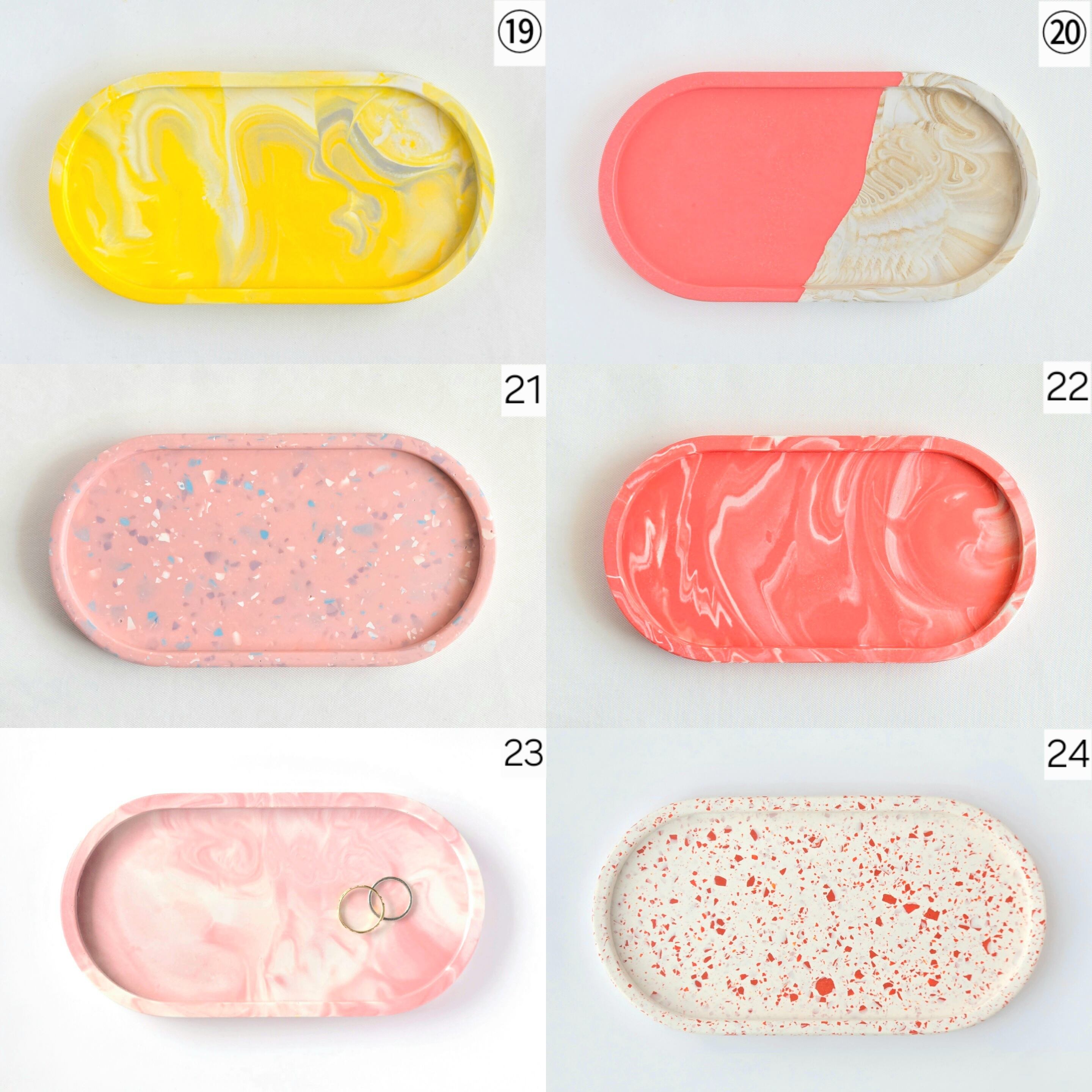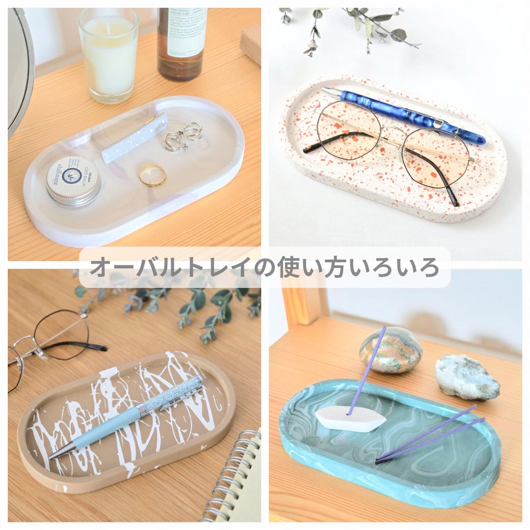 さまざまなカラーでお作りしているトレイは、アクセサリーや、メガネ置き、鍵入れなど色々な使い方ができる、ひとつあると便利なトレイ。