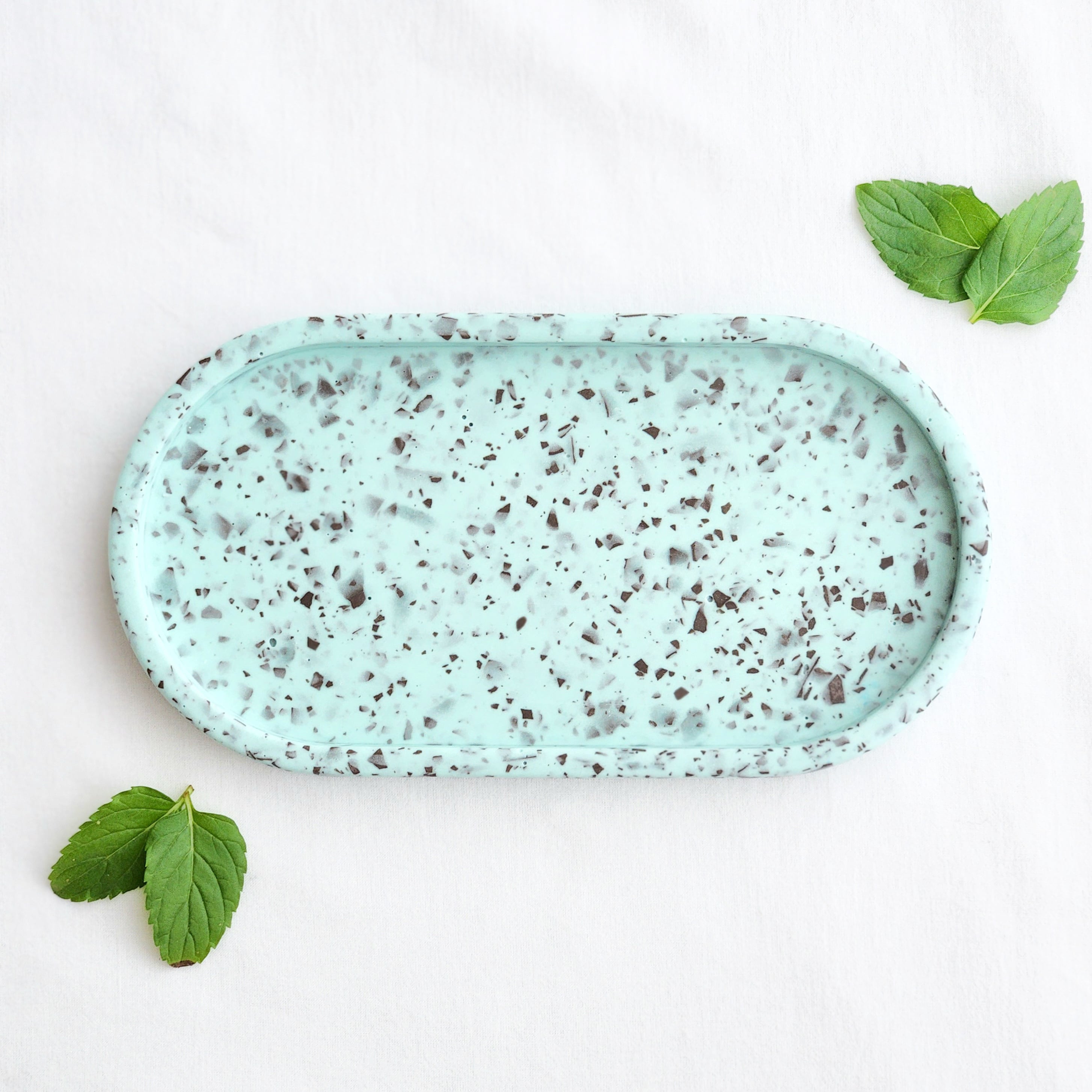 チョコミント柄のテラゾーオーバルトレイ | アクセサリーや小物置きをおしゃれに収納 | ギフトにも