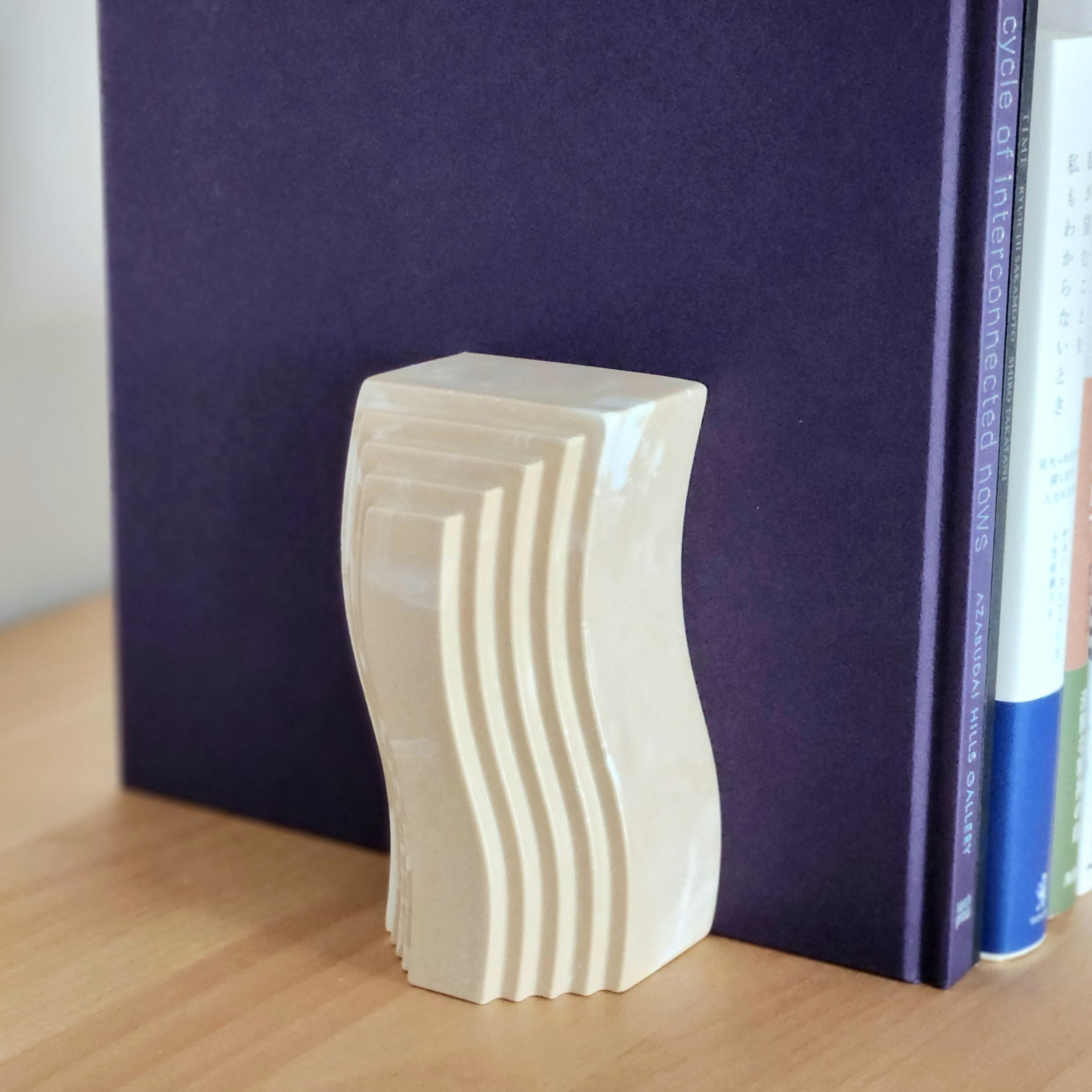 ベージュに白のマーブル模様を入れた、ブックスタンド・オブジェです。