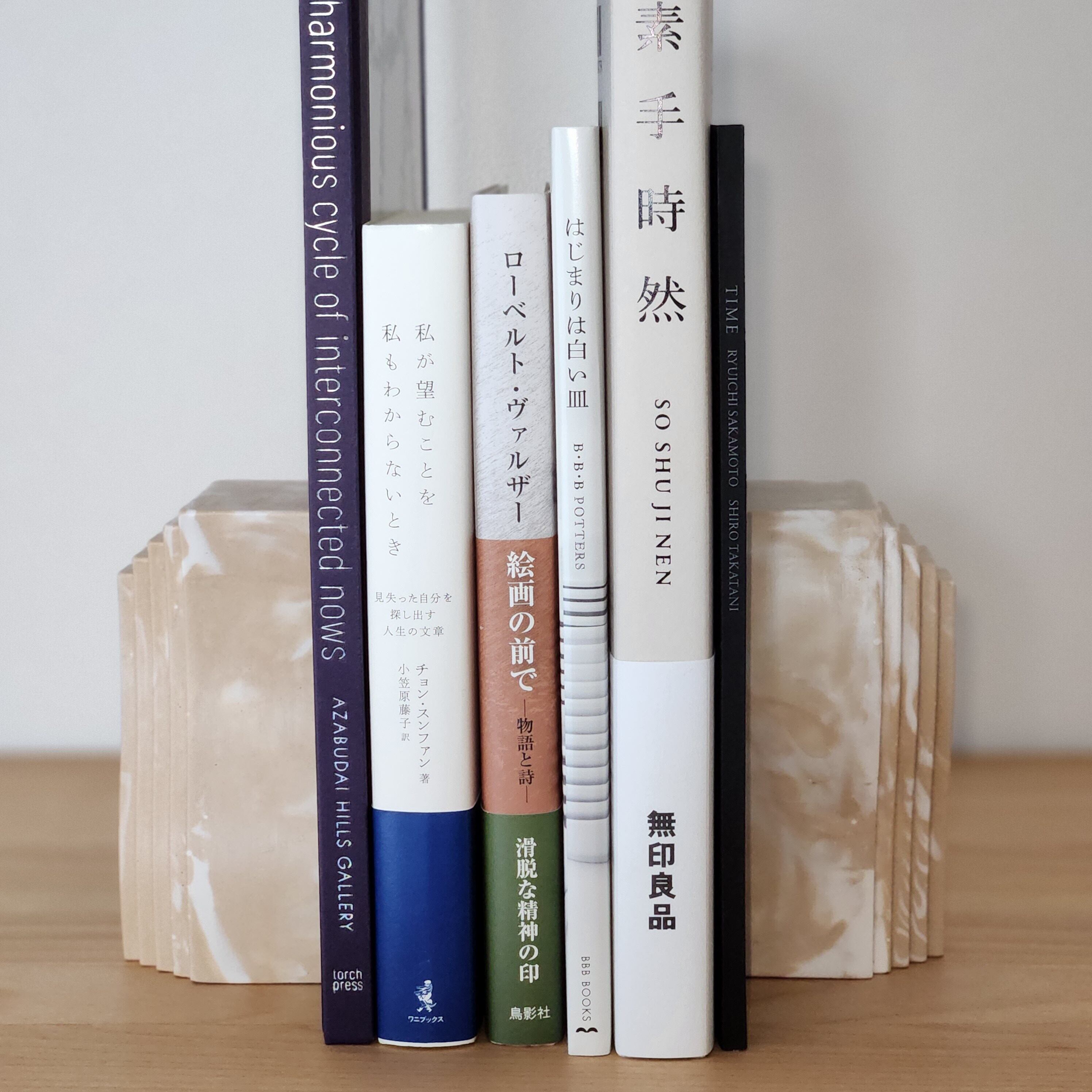 ブックスタンド / ブックエンド / オブジェ - Beige marble/ ジェスモナイト